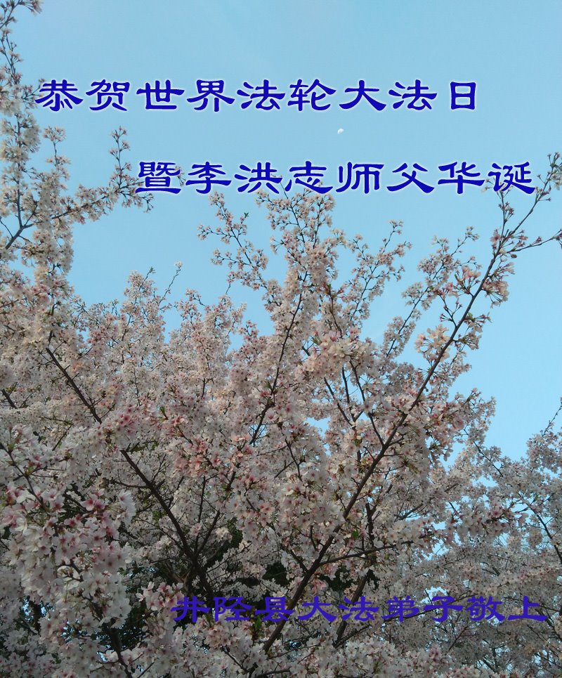 五·一三世界法轮大法日来临,祝愿伟大慈悲的师父生日快乐!弟子会尽全力完成自己的使命,随师父圆满回家。感恩师父,感恩大法。 河北一青年大法弟子 河北省石家庄市井陉县大法弟子恭祝世界法轮大法日!暨李洪志师父华诞!