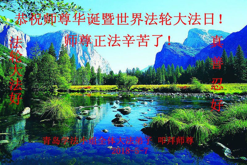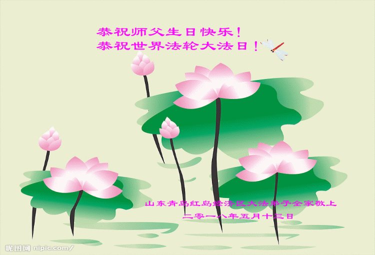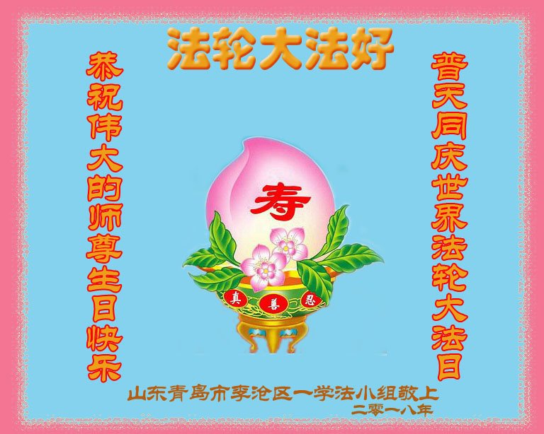 【明慧网二零一八年五月十二日】 山东省青岛大法弟子恭祝师尊华诞!庆贺世界法轮大法日!