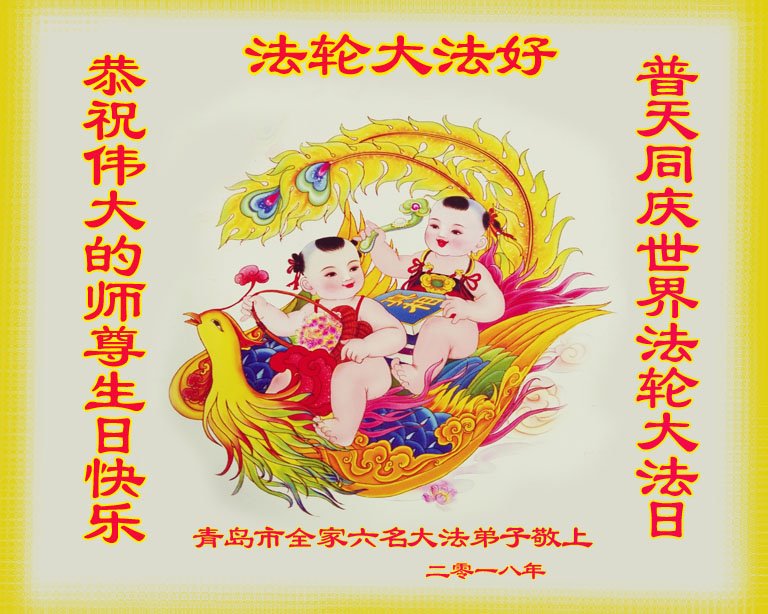 山东省青岛大法弟子全家恭祝师尊生日快乐!普天同庆法轮大法日!