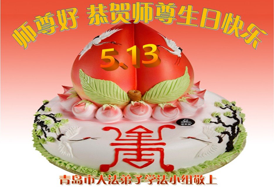 尊敬的师尊您好,每年的今天弟子都怀着无比感恩的心情感恩师尊对弟子的慈悲救度。 山东省青岛西海岸新区大法弟子恭祝师父生日快乐!恭贺5·13世界法轮大法日!