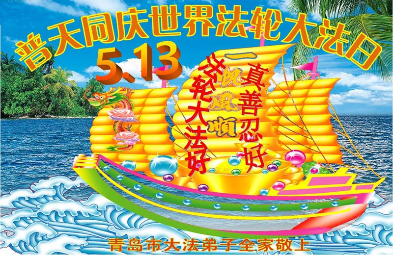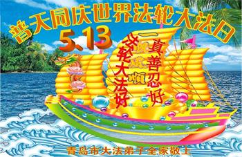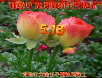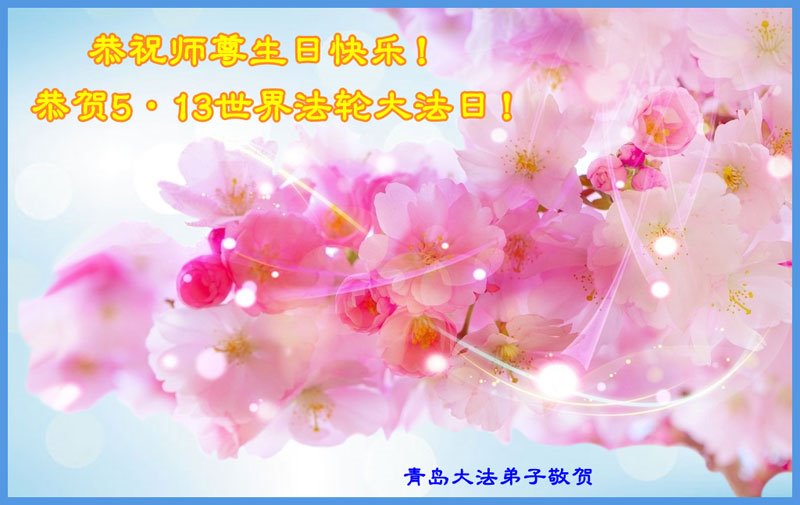 山东省青岛大法弟子恭祝师尊生日快乐!普天同庆法轮大法日!