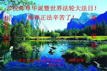 山东省青岛大法弟子恭祝师尊生日快乐!恭祝世界法轮大法日!