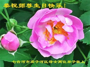 黑龙江省七台河市茄子河区母女大法弟子恭祝师尊生日快乐!