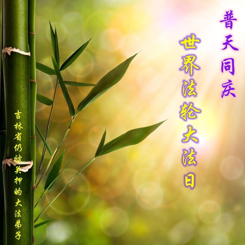 普天同庆世界法轮大法日! 高墙隔不断我们对师尊的思念,我们就想对师尊说七个字:“身如磐石志愈坚!”被非法关押在湖北省范家台监狱的大法弟子叩拜恩师! 吉林省桦甸市大法弟子及被非法关押的大法弟子敬祝师父生日快乐!