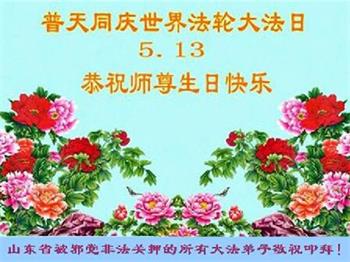 山东省被邪*党-非法关押的全体大法弟子祝贺世界法轮大法日!恭祝师尊生日快乐!