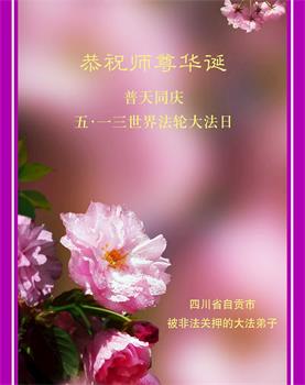 恭祝慈悲伟大的师尊生日快乐!普天同庆世界法轮大法日! 四川威远被非法关押的五名大法弟子及家属敬贺 大连被非法关押的大法弟子恭祝慈悲伟大的师尊生日快乐!
