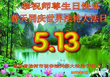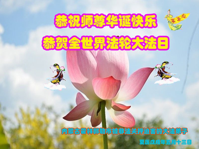 普天同庆“五·一三”!贺大法洪传二十六周年暨第十九届世界法轮大法日! 师父您辛苦了!我们无论身在何处都会坚信师尊和大法。 内蒙古霍林郭勒市被非法关押迫害的大法弟子恭祝师尊华诞快乐!