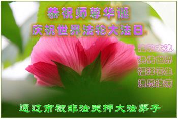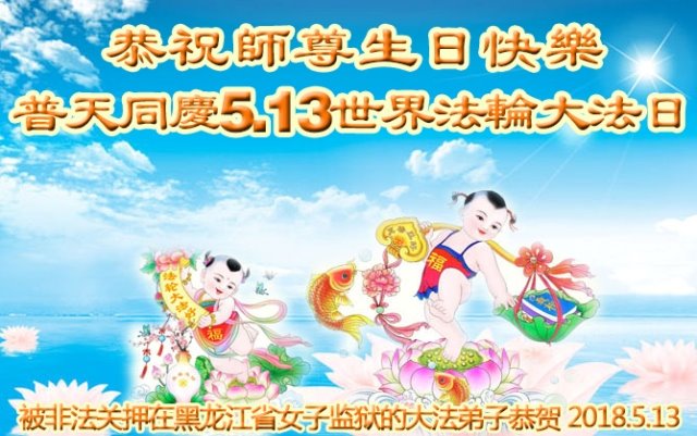 黑龙江大庆大法弟子和在黑窝里的姐姐恭贺法轮大法日!