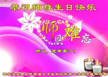 被非法关押在黑龙江省女子监狱的大法弟子恭祝师尊生日快乐!