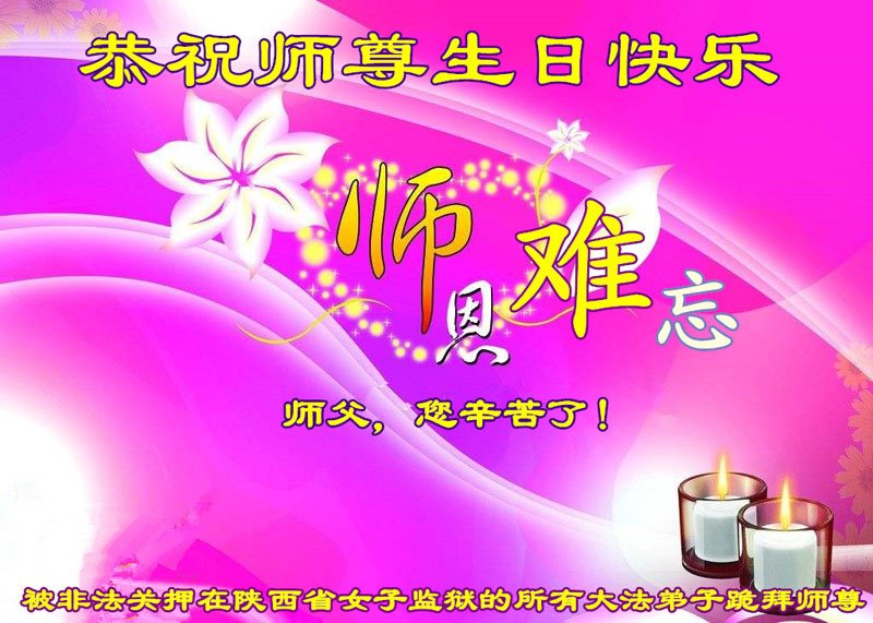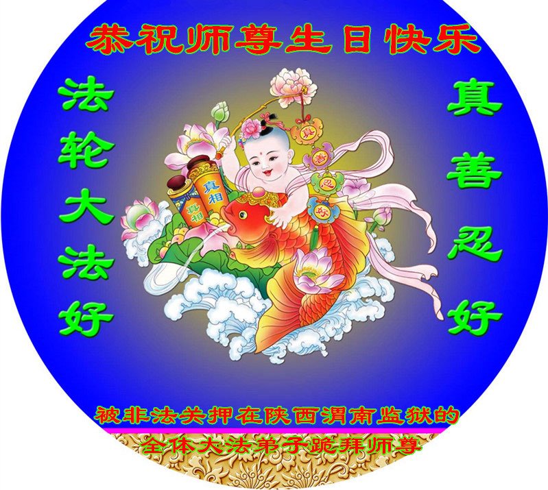 被非法关押在陕西省渭南监狱的所有大法弟子恭祝慈悲伟大的师尊生日快乐!