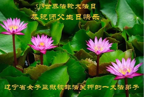 同贺五·一三世界法轮大法日! 辽宁省女子监狱被非法关押的一大法弟子虔敬的恭祝师父生日快乐!