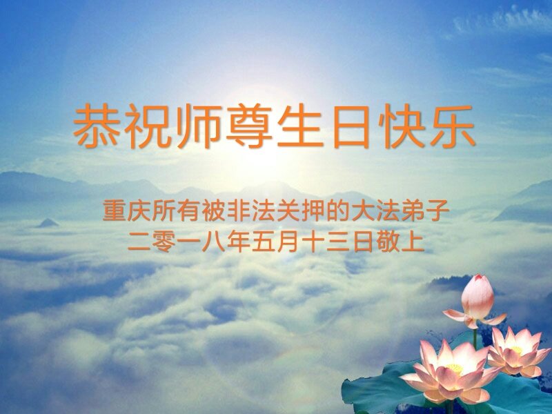恭贺法轮大法日! 弟子一定牢记师父的教诲,跟师父回家。 重庆地区所有被非法关押的大法弟子恭祝师尊生日快乐!
