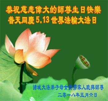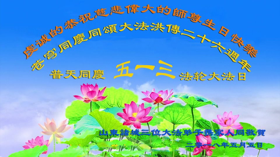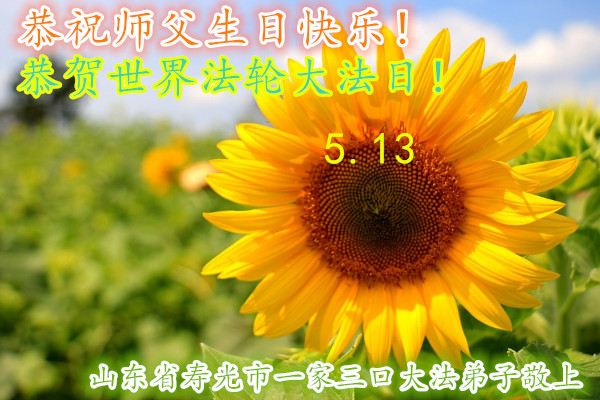 山东省寿光市一家三口大法弟子恭祝慈悲伟大的师父生日快乐!恭贺世界法轮大法日!普天同庆5.13! 山东潍坊寒亭一学法小组全体大法弟子恭祝慈悲伟大的师父传法二十六周年!弟子祝愿师父生日快乐!