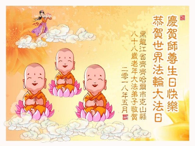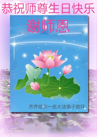 【明慧网二零一八年五月十二日】 黑龙江省齐齐哈尔一名大法弟子恭祝师尊生日快乐!