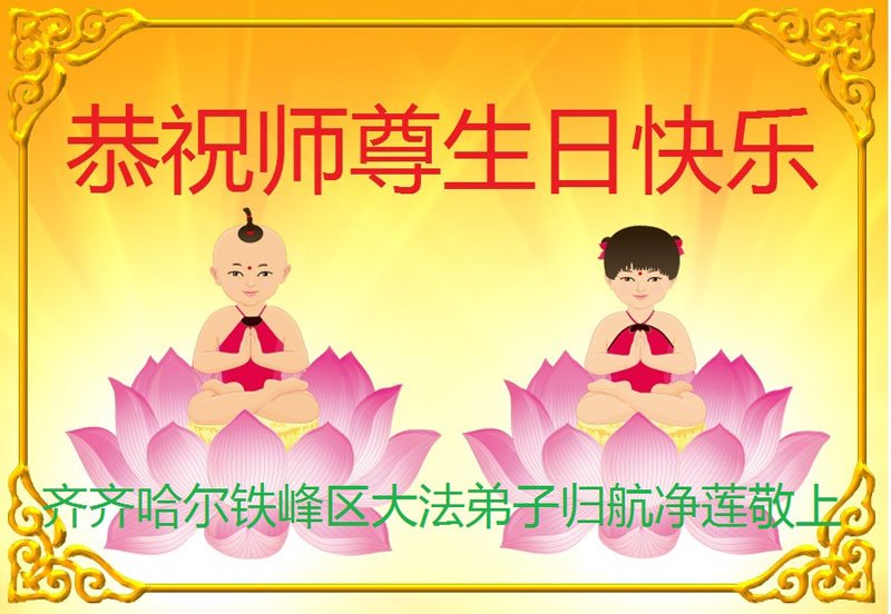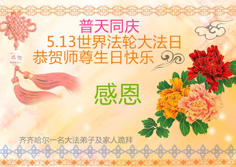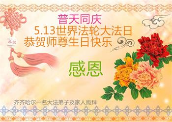 黑龙江省齐齐哈尔一名大法弟子及家人恭祝师尊生日快乐!普天同庆世界法轮大法日!