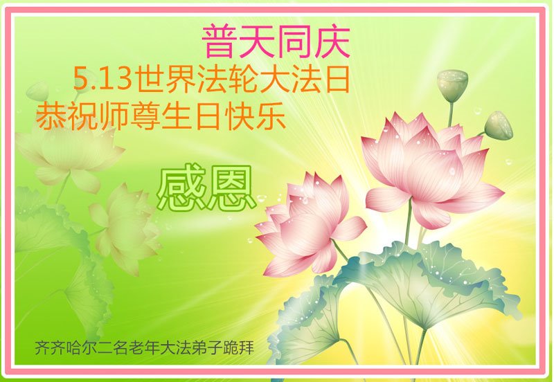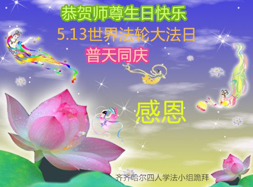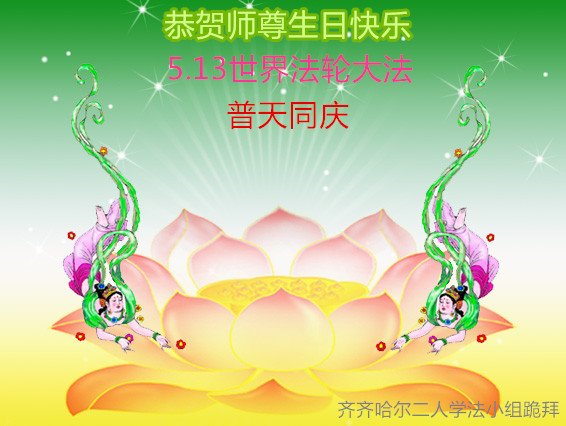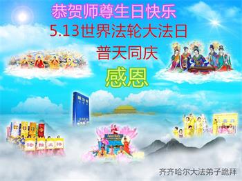 普天同庆513世界法轮大法日!恭祝师尊华诞! 黑龙江齐齐哈尔全体大法弟子恭祝师尊生日快乐!