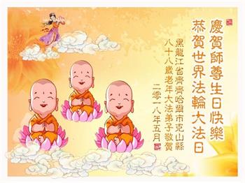 黑龙江江齐齐哈尔市克山八十八岁老年大法弟子敬贺师尊生日快乐!暨世界法轮大法日!