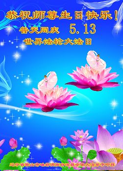 我们一定精進实修做好三件事,不负师恩,走好最后的路,圆满随师还。 辽宁抚顺大法弟子恭贺世界法轮大法日暨师尊华诞!