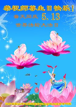 在这普天同庆的日子里弟子们想念师尊,弟子们牢记师尊的教诲,修好自己,救度好众生,让师尊多一份欣慰,少一份操劳,合十。 辽宁省抚顺市四人学法小组大法弟子恭祝师尊生日快乐!普天同庆5.13!