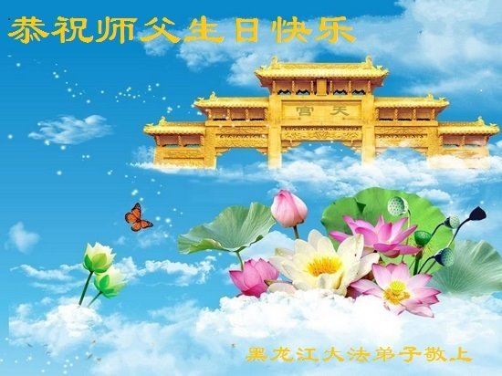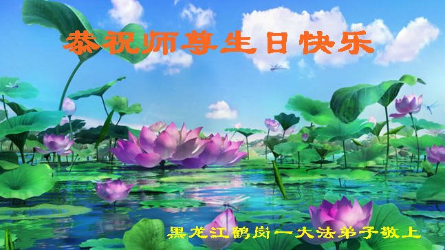 黑龙江省东部边陲小镇全体大法弟子恭祝慈悲伟大的师父生日快乐!