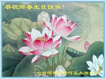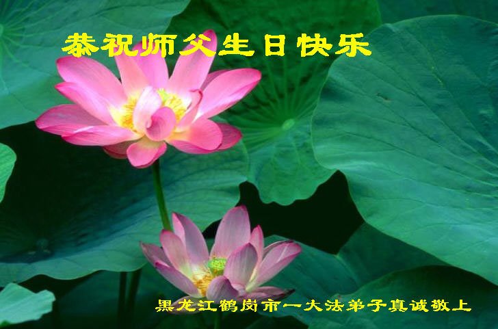 黑龙江鹤岗市一法轮功学员全家人恭敬师父生日快乐!