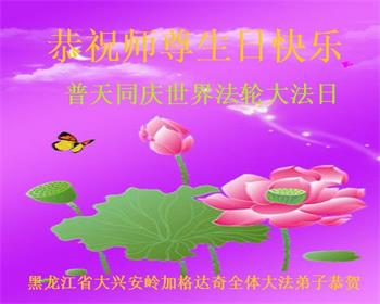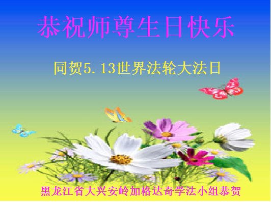 黑龙江省大兴安岭加格达奇全体大法弟子恭祝师尊生日快乐!普天同庆世界法轮大法日!