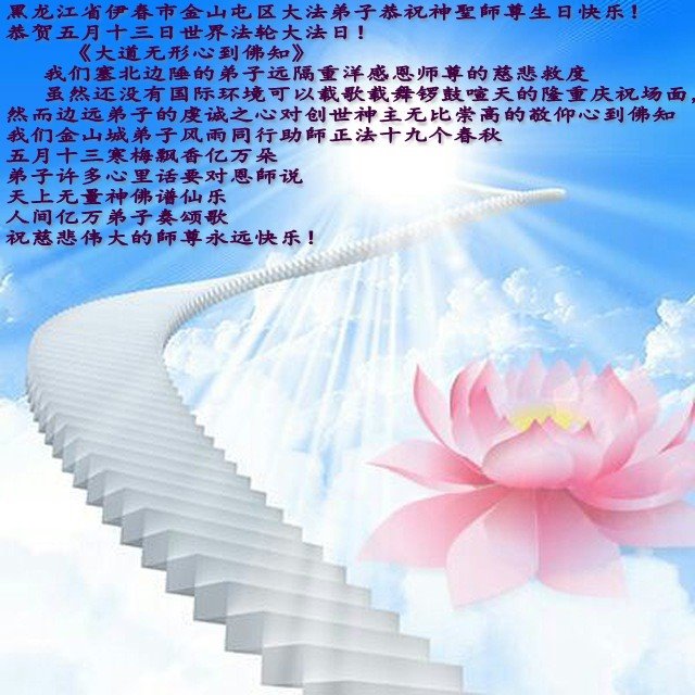黑龙江省伊春市金山屯区大法弟子恭祝师尊生日快乐!恭贺世界法轮大法日!