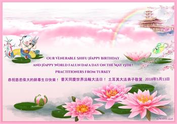 【明慧网二零一八年五月十二日】 土耳其大法弟子恭祝慈悲伟大的师尊生日快乐!普天同庆世界法轮大法日!