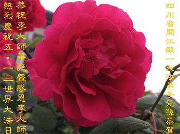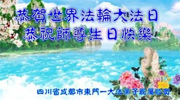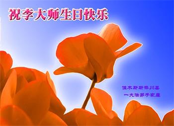 四川省成都市邛崃市大法学员春莲全家(明真相的家人)恭祝慈悲伟大的师尊生日快乐!