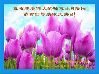 山东省烟台市龙口市大法弟子及明真相的家人恭祝慈悲伟大的师尊生日快乐!恭贺世界法轮大法日!