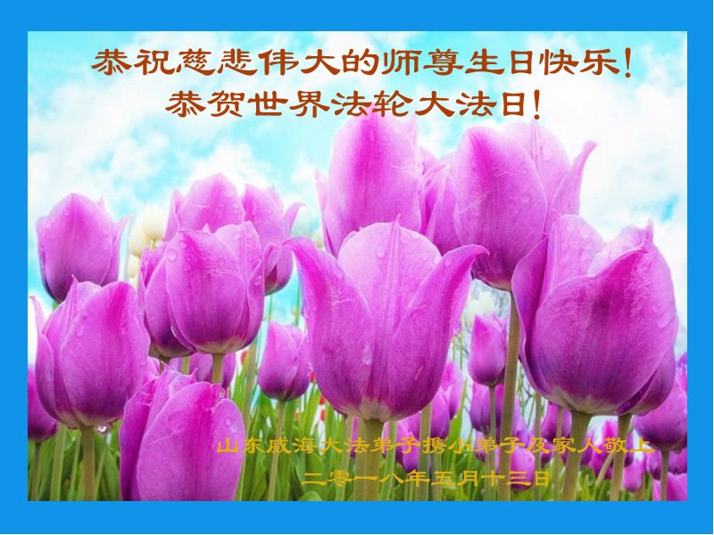 山东威海大法弟子携小弟子及明白真相的家人恭祝慈悲伟大的师尊生日快乐!