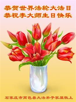 河北石家庄高邑县大法弟子家属恭贺法轮大法日!恭祝李大师生日快乐!