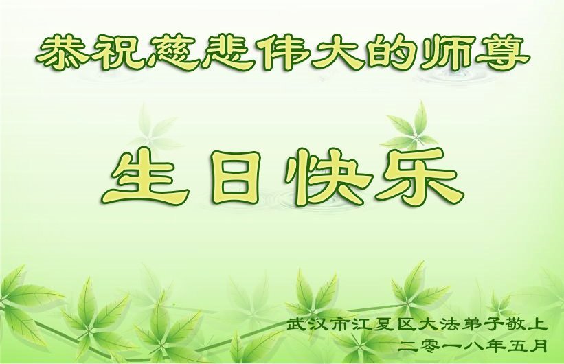 【明慧网二零一八年五月十二日】 湖北武汉一学法小组大法弟子恭祝师尊生日快乐!