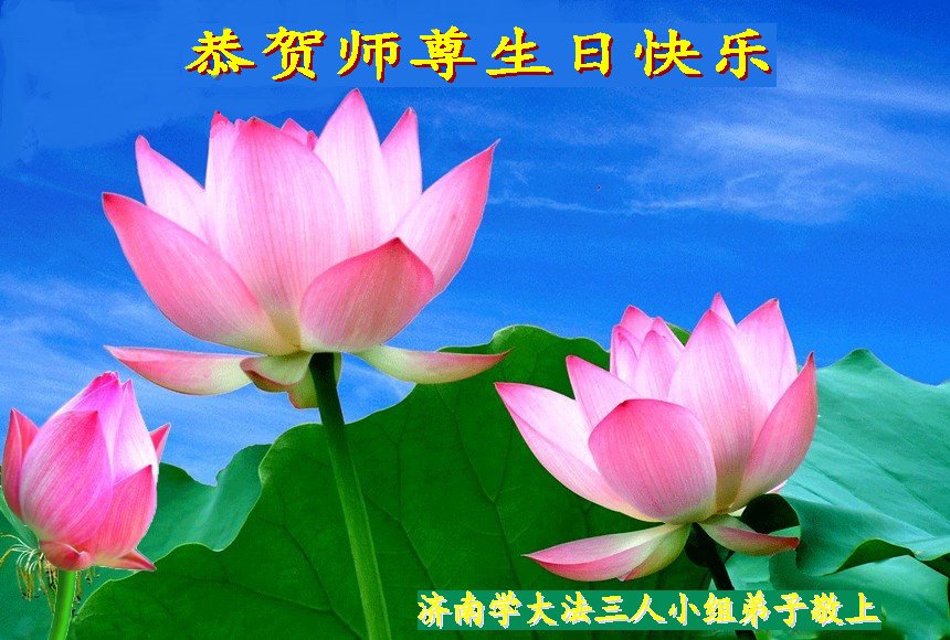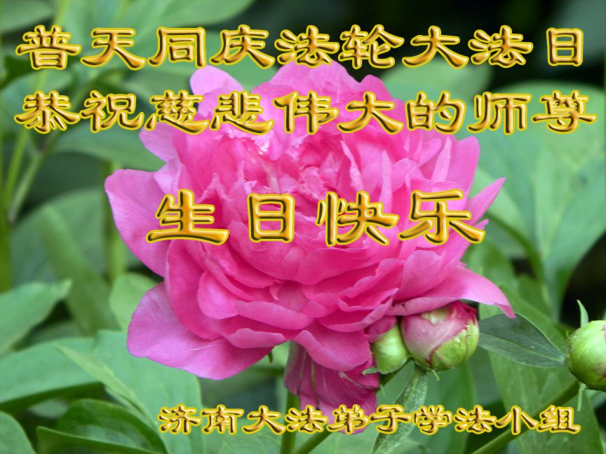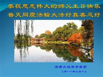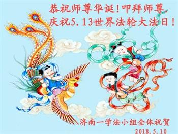 山东省济南市章丘大法弟子恭贺世界法轮大法日暨慈悲伟大的师尊生日快乐!