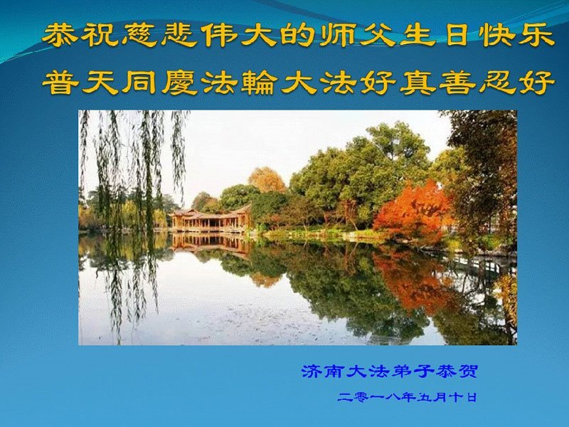 山东济南一弟子及全体家人恭祝慈悲伟大的师尊生日快乐!恭贺世界法轮大法日!