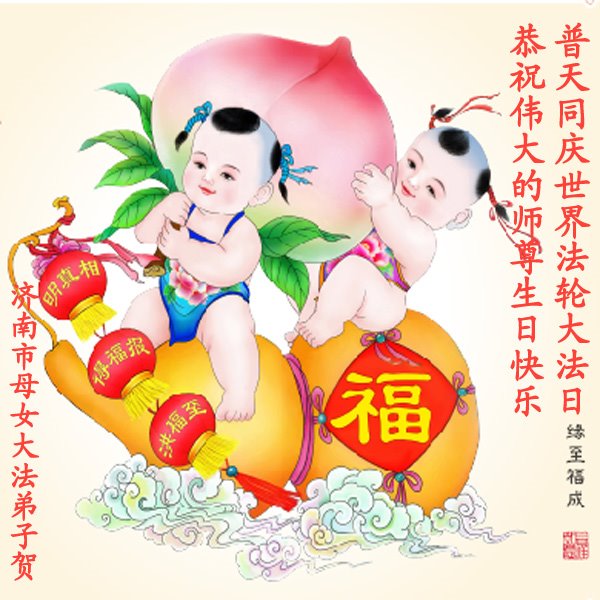 山东省济南市两位大法弟子恭贺世界法轮大法日!恭祝师尊生日快乐!