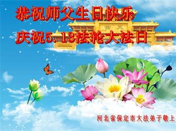 河北保定市大法弟子恭贺法轮大法日!恭祝师尊生日快乐!