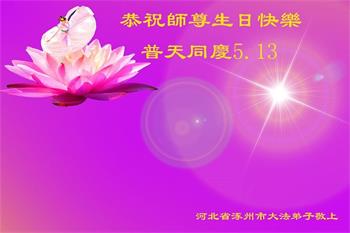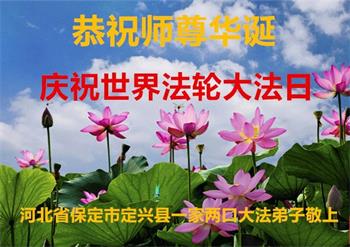 河北保定大法弟子代两位亲人恭祝慈悲伟大的师父生日快乐!
