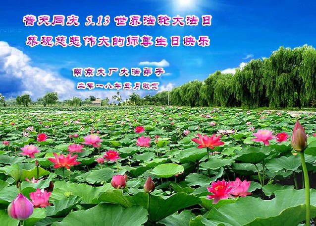 法轮大法日 师尊华诞时 普天同庆贺 深深谢师恩 切莫再蹉跎 精進莫耽搁 江苏省环保行业大法弟子恭祝慈悲伟大的师尊生日快乐!恭祝世界法轮大法日!