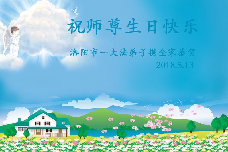 【明慧网二零一八年五月十二日】 河南洛阳市一老年大法弟子携全家恭祝师尊生日快乐!
