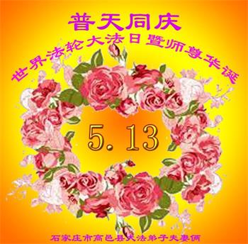 河北石家庄市高邑县大法弟子全家恭贺法轮大法日暨师尊华诞!