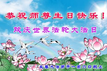 恭贺五一三世界法轮大法日十九周年!恭贺法轮大法洪传二十六周年!普天同庆同贺! 吉林省长春市6位大法弟子恭贺法轮大法日!恭祝师尊生日快乐!