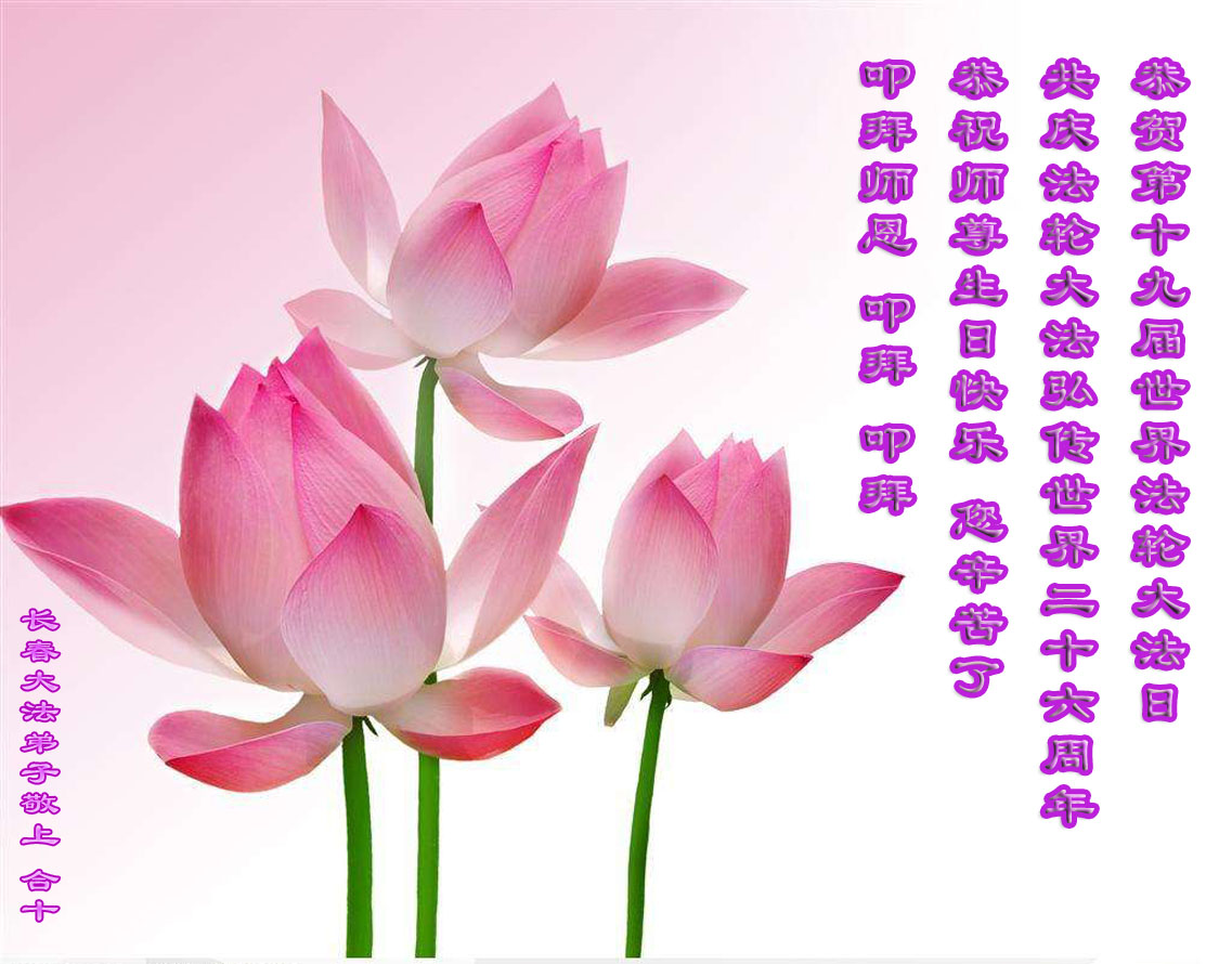 恭贺五一三世界法轮大法日十九周年!庆祝法轮大法洪传世界二十六周年! 吉林省长春四个学法小组大法弟子恭祝师尊生日快乐!