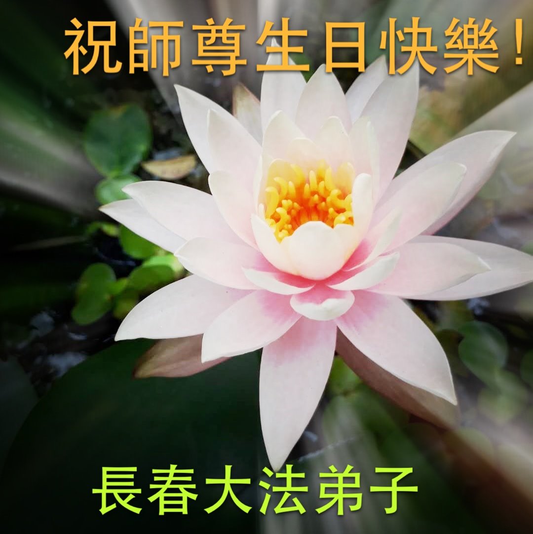 在5.13世界法轮大法日到来之前,长春大法弟子遥祝远在东海岸的师父生日快乐!感恩师尊苦度! 我们学法组的同修们在学法中得到师尊的点悟读到高深内涵的时候,弟子们常常泪流满面,那种震撼,弟子无以言表,明白师父讲的“法”真是揭开了千古之谜,秘中之秘。二十多年的修炼,刚刚读懂,愧对师父!弟子常常想起神韵的歌词:师父啊,谢谢您! 师父辛苦了!...... 长春大法弟子叩拜 2018.5.9 吉林省长春大法弟子恭祝师尊生日快乐!庆祝世界法轮大法日!