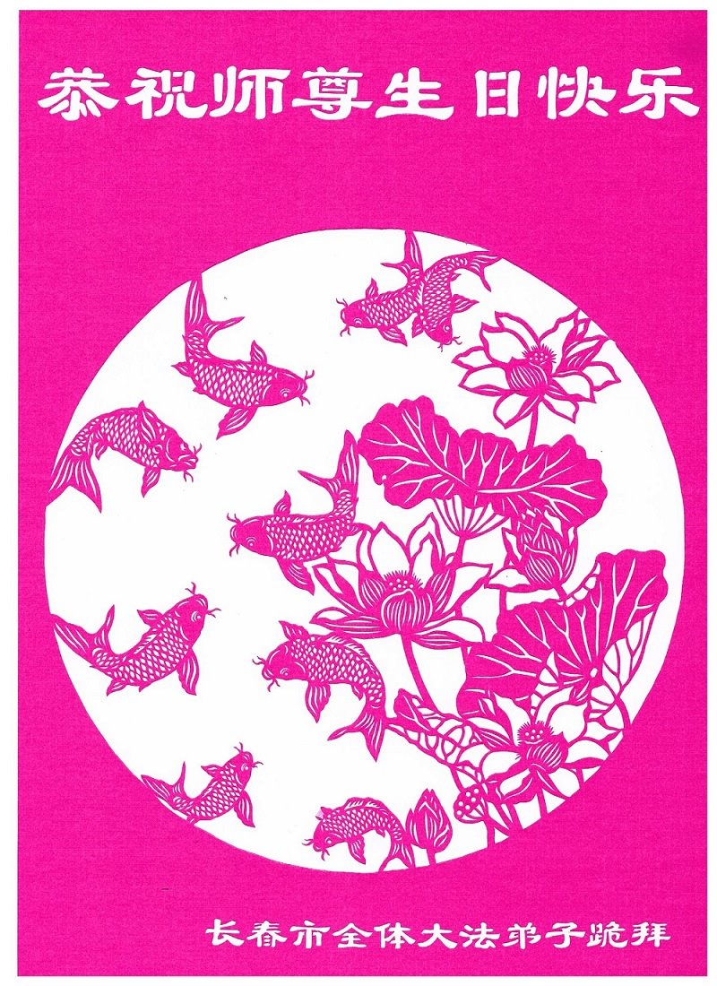 恭祝师尊生日快乐!剪纸一幅,祝贺5.13世界法轮大法日剪纸一幅。 吉林省长春一学法小组大法弟子恭祝师尊生日快乐!
