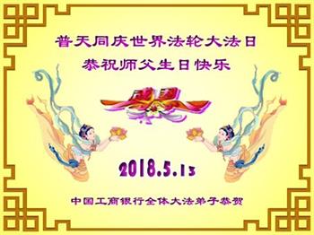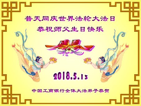 中国工商银行全体大法弟子恭贺5.13世界法轮大法日!恭祝师父生日快乐!