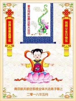 南京航天航空系统全体大法弟子恭贺世界法轮大法日!恭祝师父生日快乐!