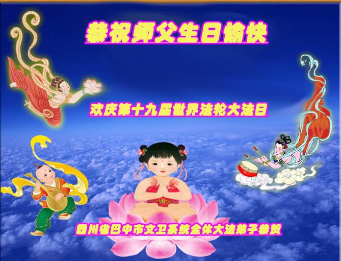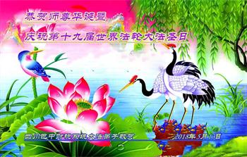 四川省巴中市文教卫生系统大法弟子恭祝师尊生日快乐!暨庆祝第十九届世界法轮大法日!
