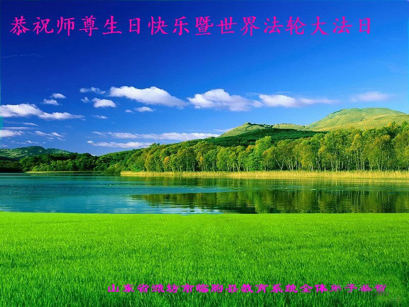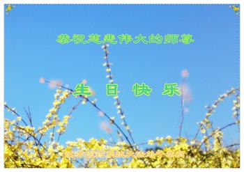 感恩遥寄明慧 惟愿师尊欣慰 师尊付出太多 一路指引回归 感恩遥寄明慧 大法洗净污秽 修心向善为他 浊世绽放光辉 感恩遥寄明慧 普天同颂慈悲 祝师生日快乐! 救众遵师教诲 山东省潍坊市临朐县教育系统全体大法弟子恭祝师尊生日快乐!暨世界法轮大法日!