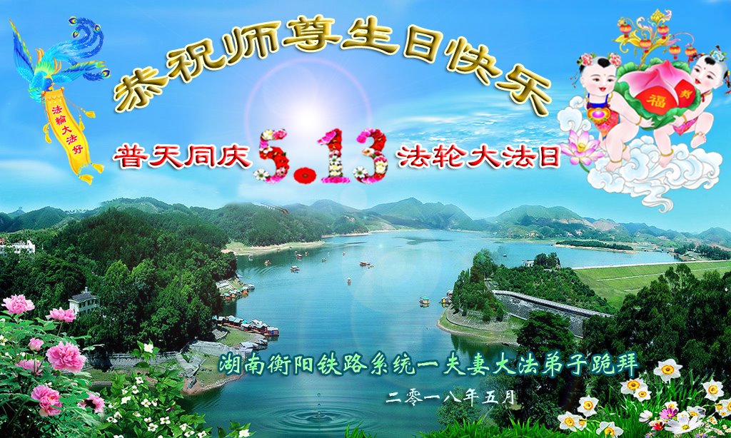 湖南衡阳铁路系统一夫妻大法弟子恭祝师尊生日快乐!普天同庆世界法轮大法日! 2018年5月跪拜 大陆财务系统大法弟子恭祝慈悲伟大的师尊生日快乐!